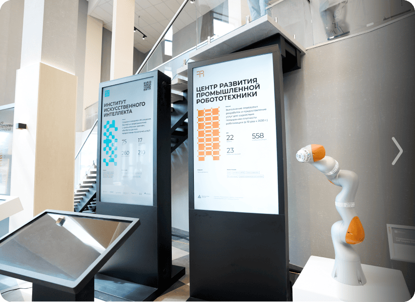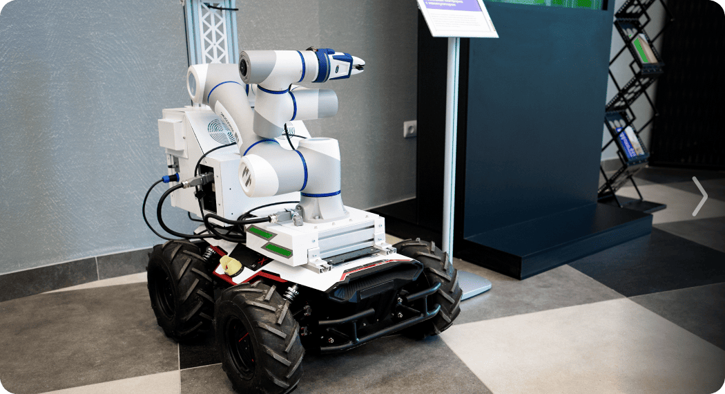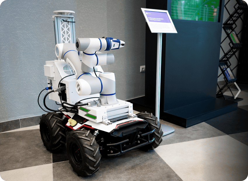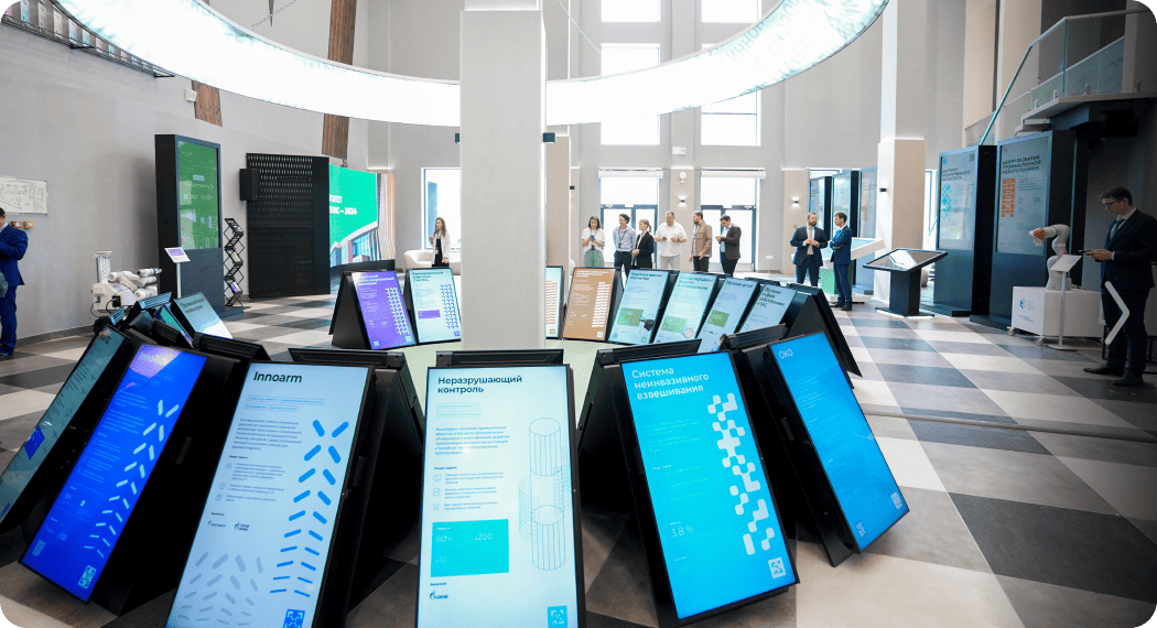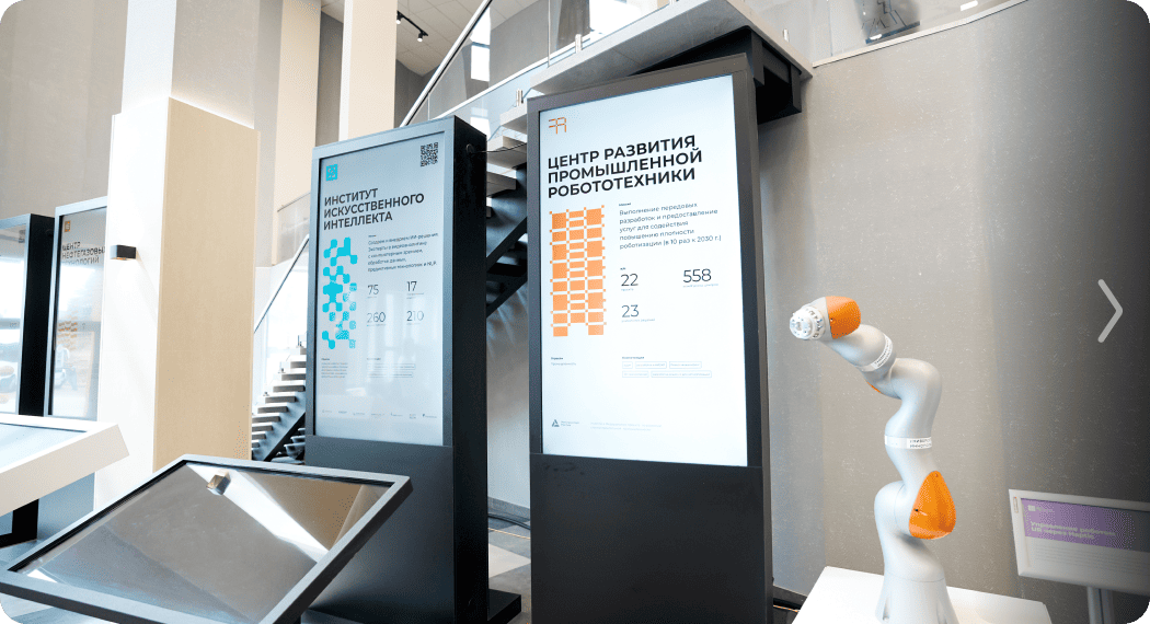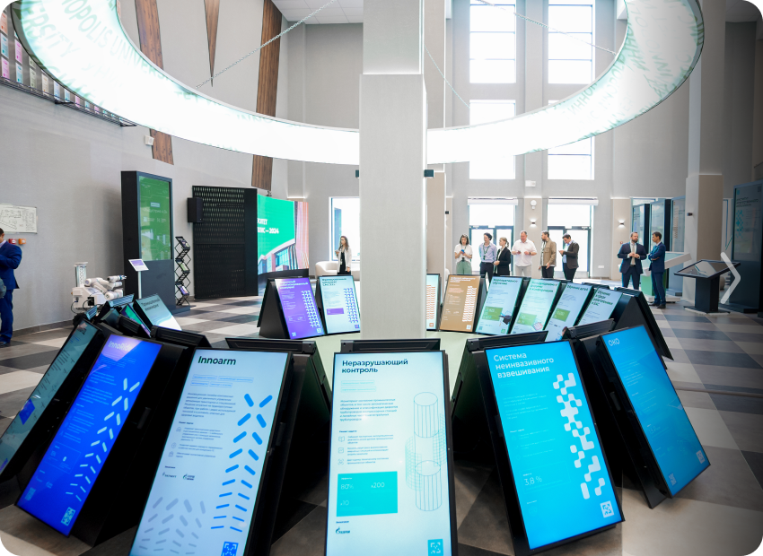Шоурум «Индустрия 4.0» — это пространство высокотехнологичных проектов Университета Иннополис, лаборатория для апробации инноваций и площадка для подготовки студентов, кадров для индустрии. В экспозоне пространства презентуются собственные разработки центров университета, среди них робототехнические, беспилотные и цифровые решения.